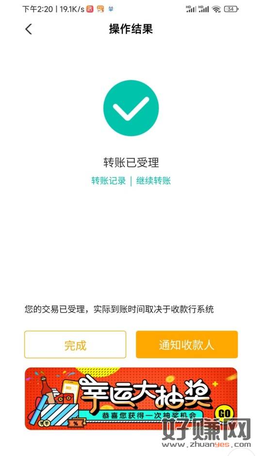 农行转账任意金额,下面有个抽奖,三个手机中两个了10元立减金??可以试试