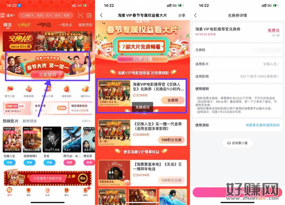 [ 淘票票积分兑换交换人生电影票 ]限淘票票会员参与!淘票票AP