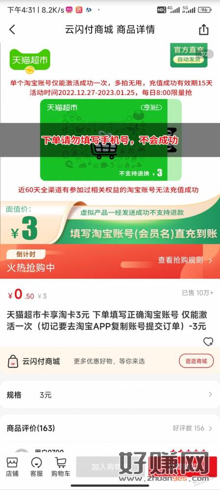 云闪付搜天猫超市0.5买3猫超卡 没买过得去