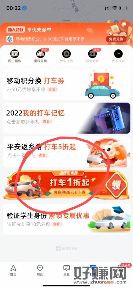 高德-打车-下拉横幅,做任务四次机会用完,认腾讯月卡