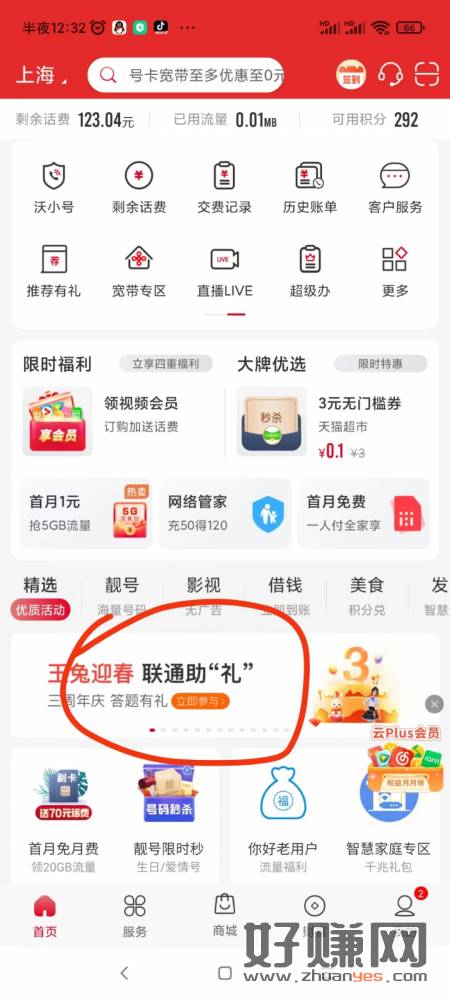 联通app抽月卡