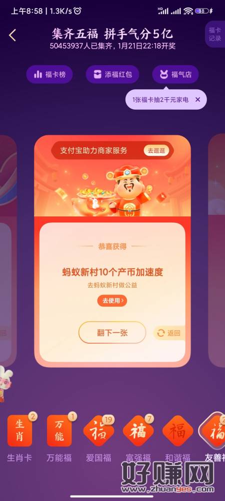 支付宝-我的-银行卡 天天抽奖 立减金有水,机会抽完
