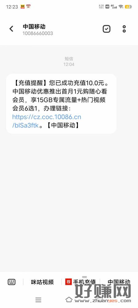 [ 美团 ]您有一个新通知:9.9元话费充值券到账,1分钱可充1
