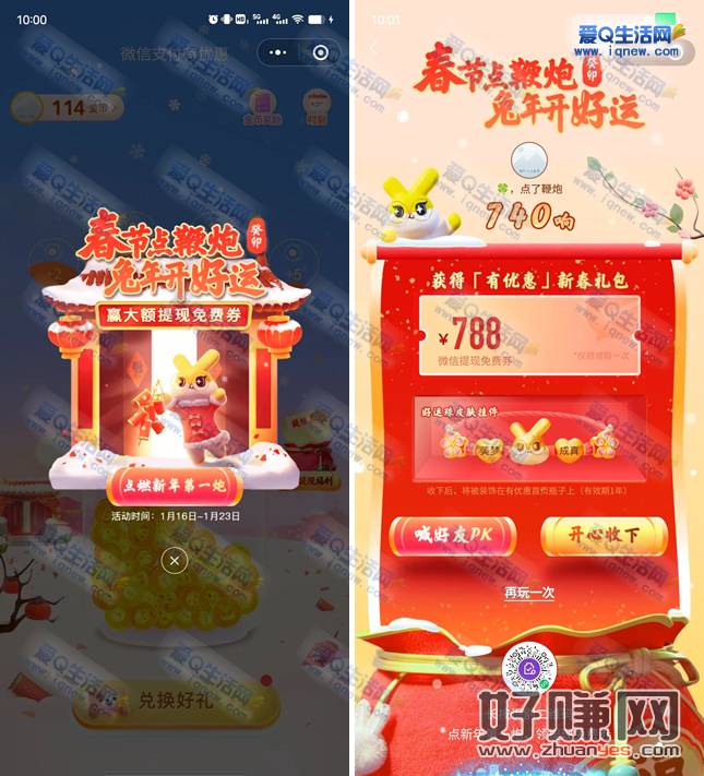 微信春节点鞭炮赢大额提现券 亲测788提现额度