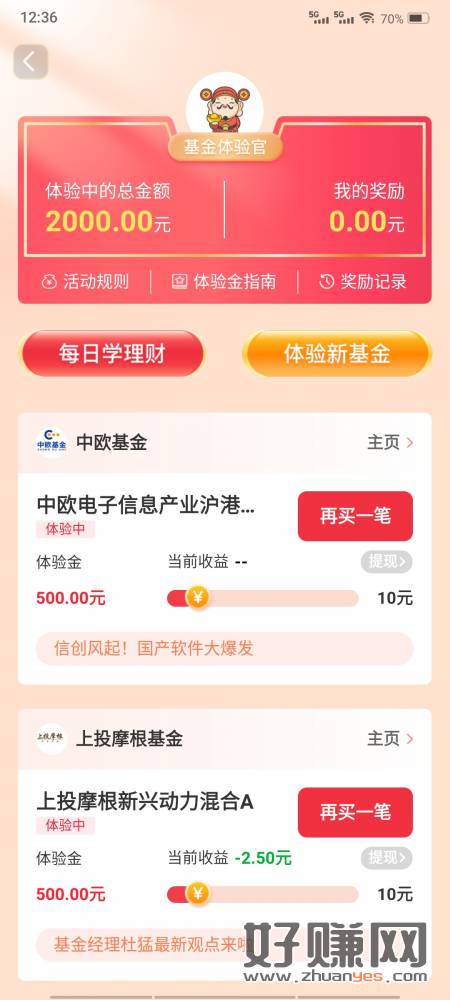 天天基金搜索基金体验,看看以前自己体验的基金,今天大涨,应该