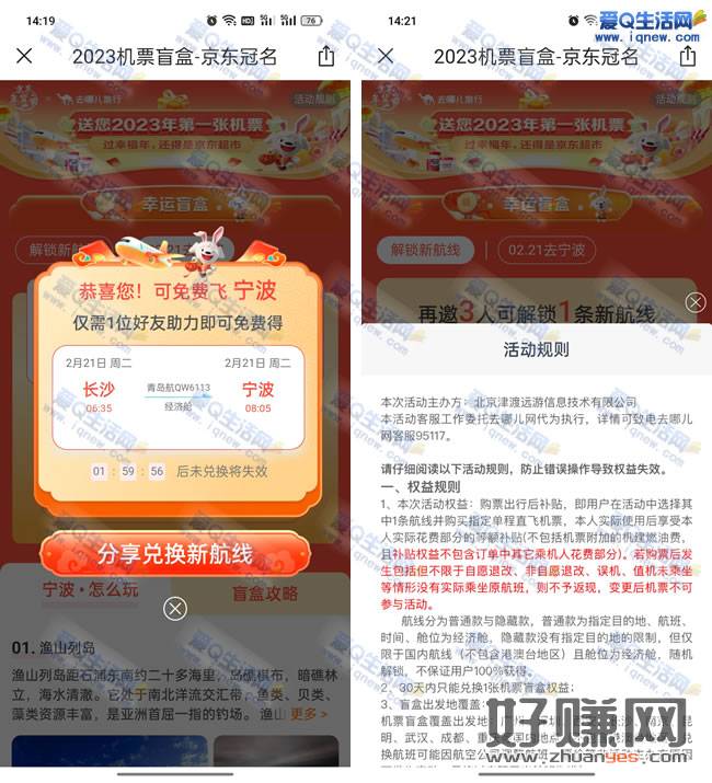 去哪儿旅行抽免费机票 最多可解锁14张免费机票