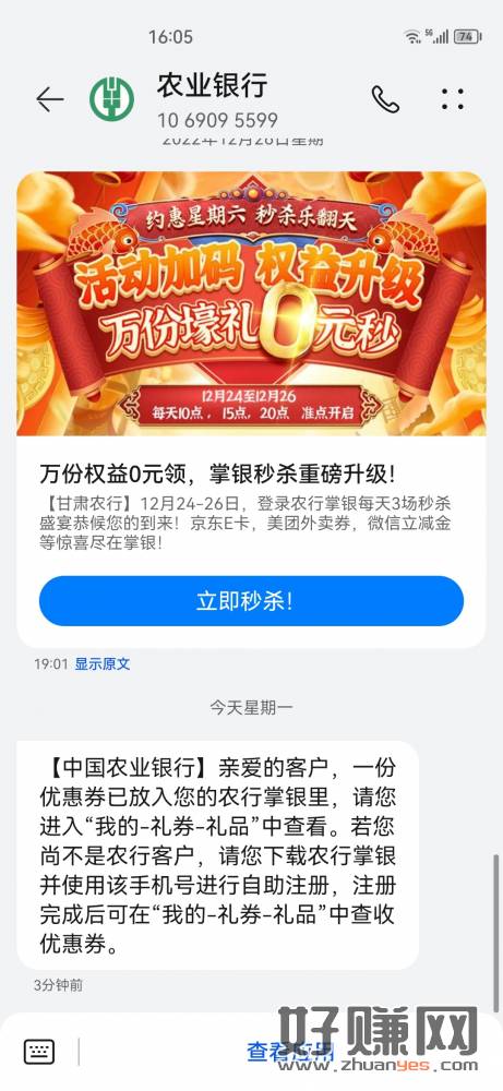 收到一条短信,发现之前不知道玩的啥活动,是安徽农行的,