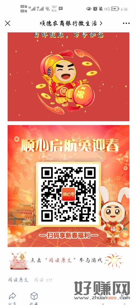 公众号顺德农商银行微生活,答题抽奖,两次答题机会,三次抽奖机会,0.38
