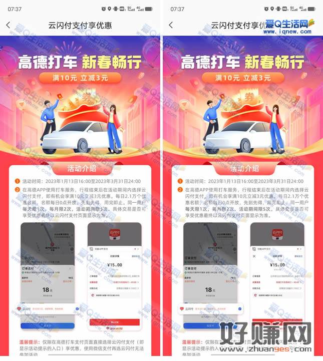 高德打车只要用云闪付支付就可以看到有满10-3元的支付优惠了