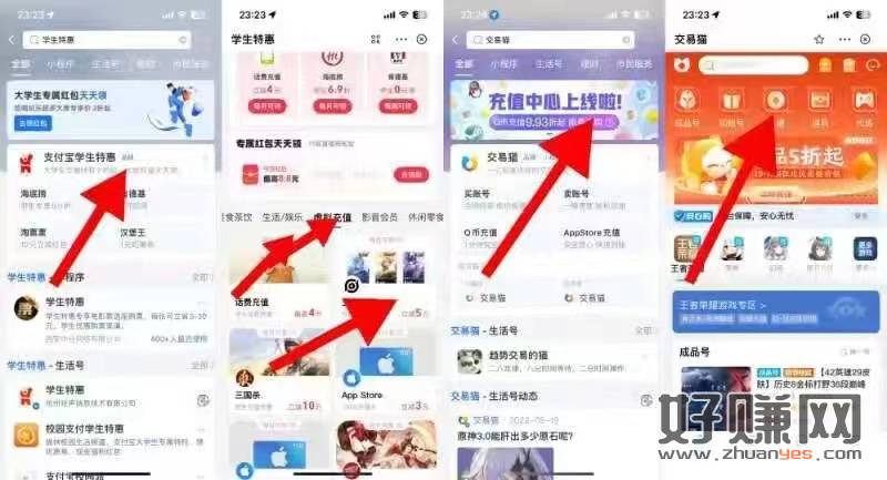 支付宝搜学生特惠 领交易猫15-5的券 买qb提交订单15充
