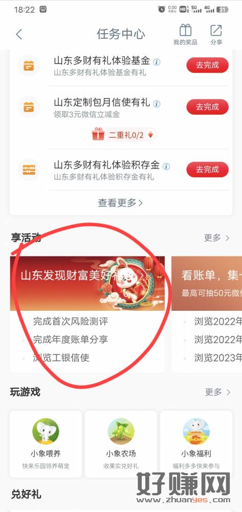 山东工行,任务中心-享活动,做完四个任务得立减金