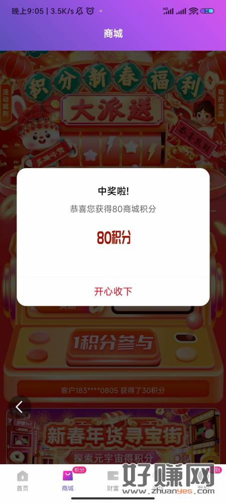 和包APP→商场→积分新春福利大派送