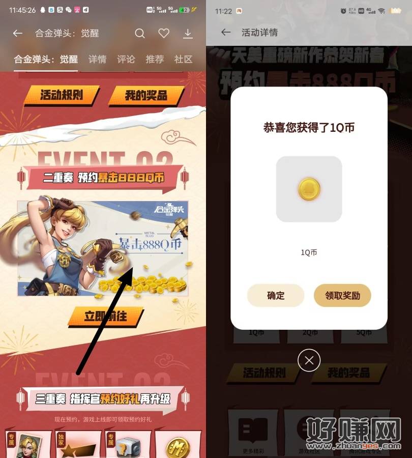 oppo游戏中心搜索 合金弹头 抽Q币