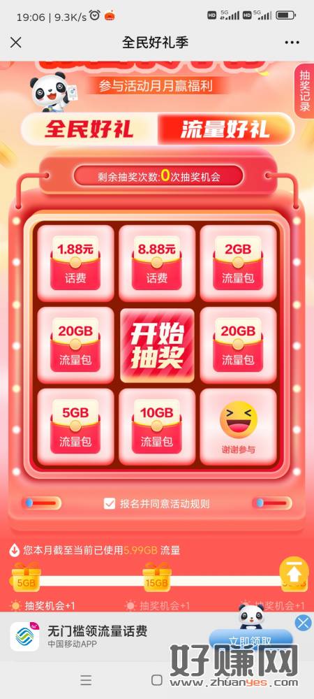 四川移动号,去用流量,抽话费,刚中8.88话费,三次机会