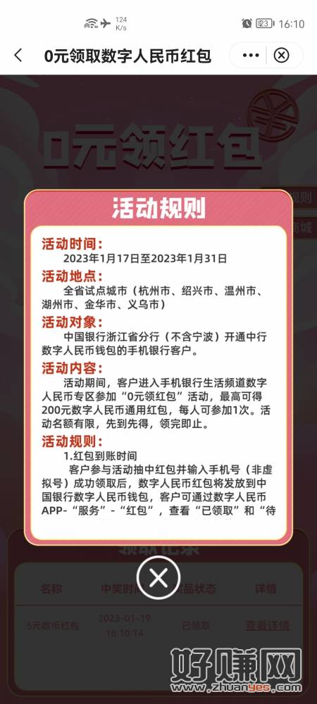 中国银行浙江用户去看地区数字人民币,最低5刚出