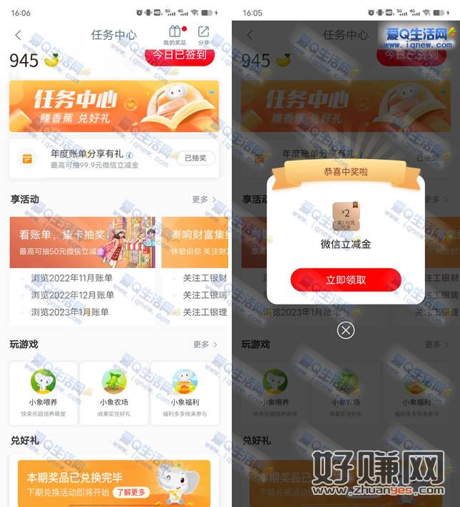 工行分享年度账单抽最高99.99元立减金 亲测2元立减金秒到