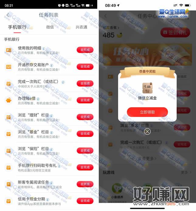 1.工行APP-搜索【任务中心】-去完成任务抽奖