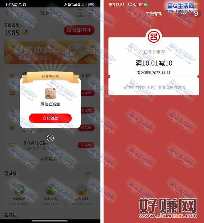 工行任务中心多个抽立减金活动 亲测10元微信立减金秒到卡包