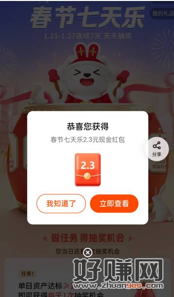 平安口袋银行APP万元户搜(春节七天乐)抽奖,在平安存了1万块以上的,可以去玩玩(其他无视)。分享加1,可以抽两次