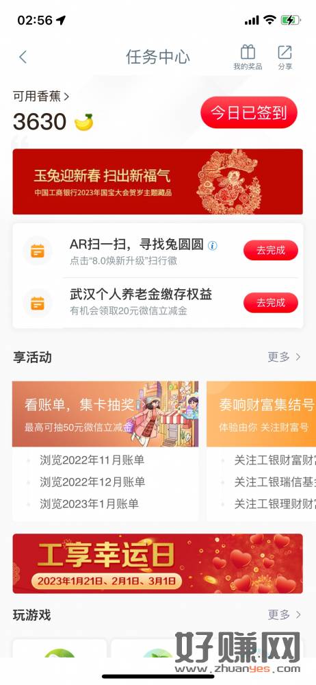 湖北工行终于出任务了,任务中心下拉工享幸运日刚中10