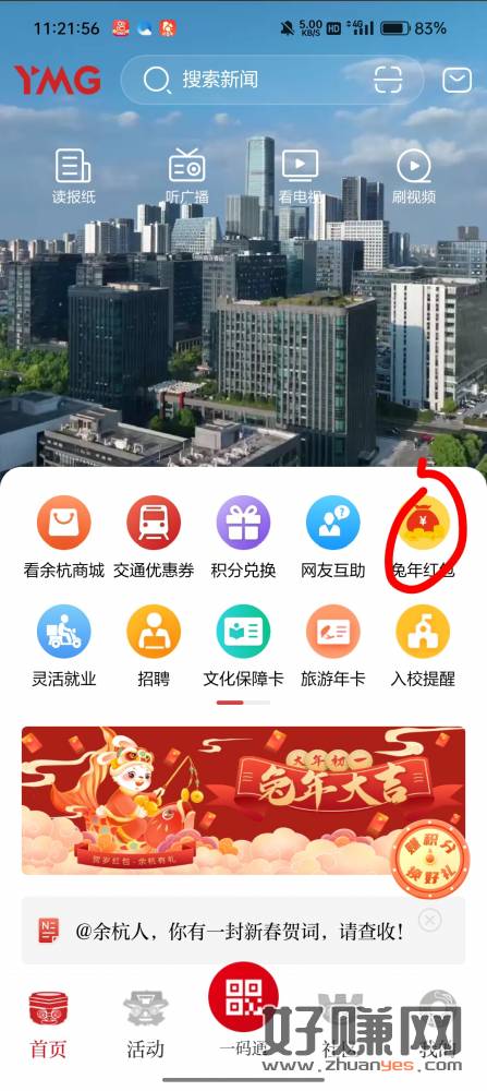 下载看余杭app,做几个任务抽,应该是必中的,最低1.88,实名用料子