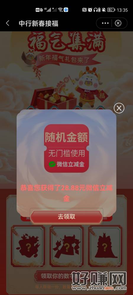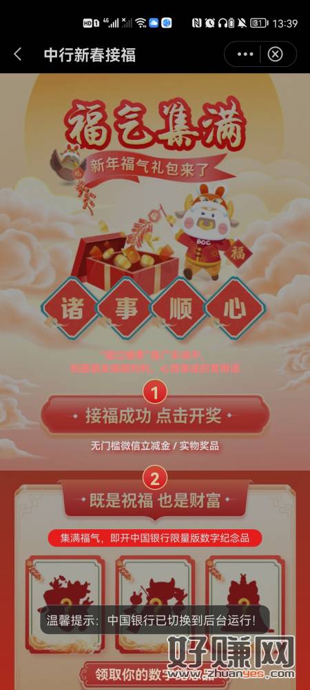 公众号:中国银行深圳分行→中间进去→图一横幅新春接福→点击跳转中行app→完成4个浏览任务→集齐任务一开礼包/刚中28