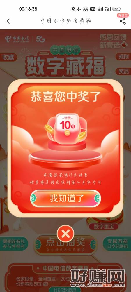 中国电信,数字藏福刚中话费