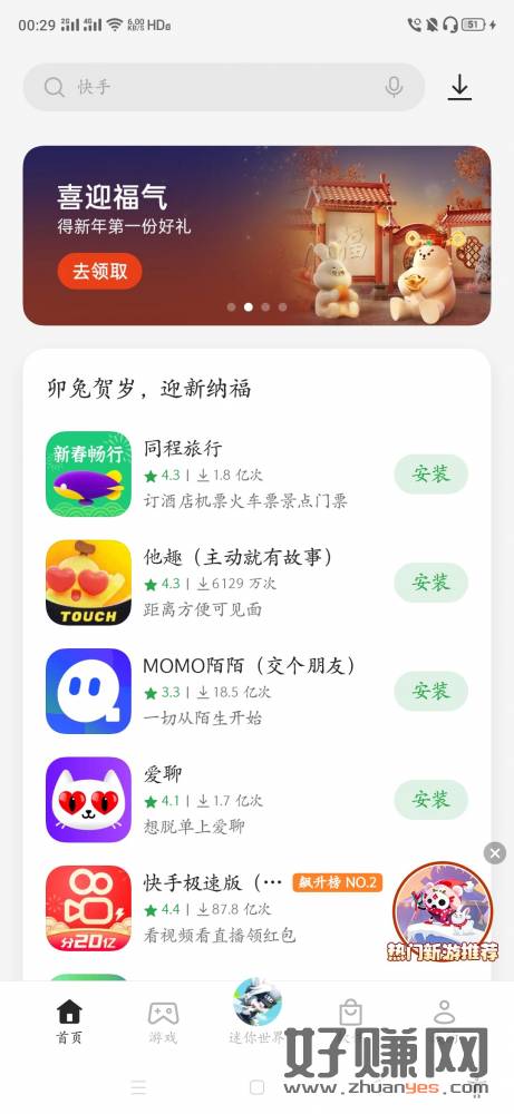 oppo应用商店,打开图,或者右下角热门新游推荐,下载10个