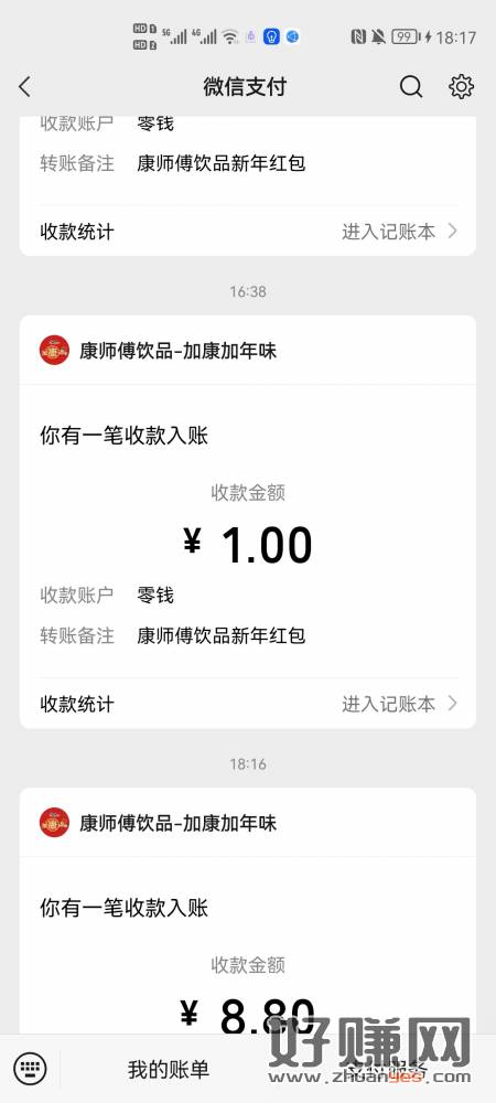 关注 康师傅公众号 中间第3个幸运抽奖 然后点福袋 0.3