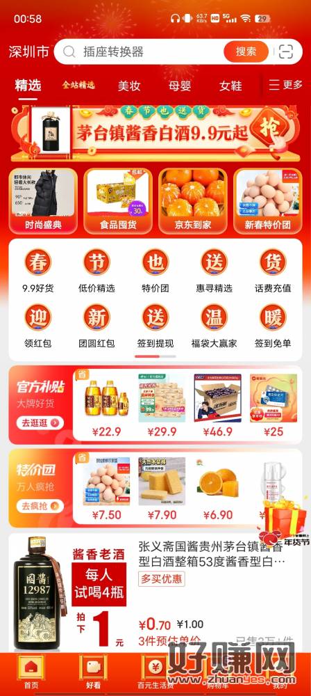 京东特价版首页,团圆有水
