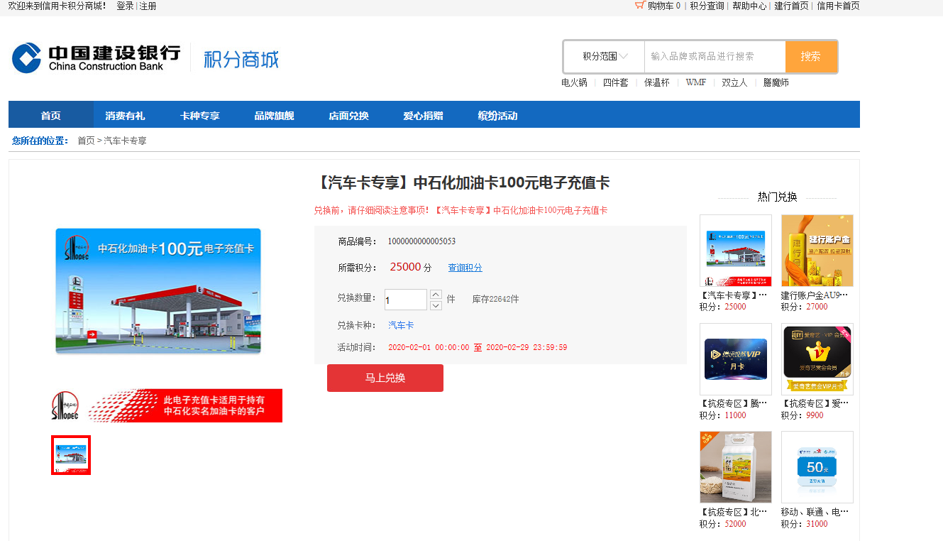 建行汽车卡积分换油卡有货
