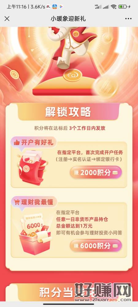前两天不是有人发那个信银理财的嘛,签到3天兑5e卡,新开户送2000积分,可以兑20ek,开个户3分钟,积分隔两天到