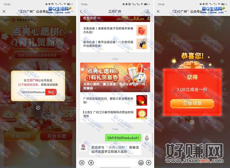 活动地址:微信【工行广州】公众号,走下角【我要优惠】-【点亮心愿树】