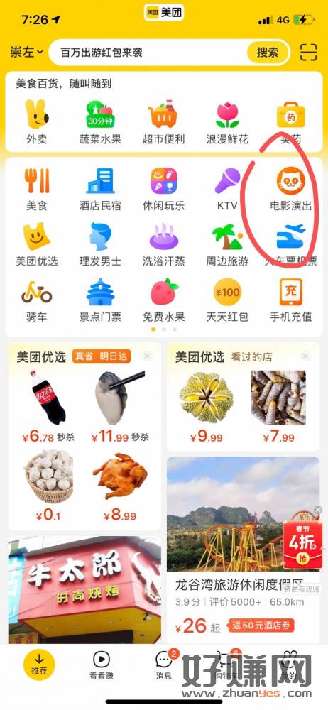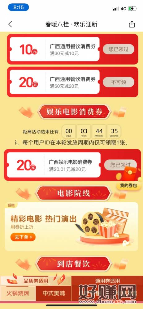 美团定位广西,搜索广西电影消费劵