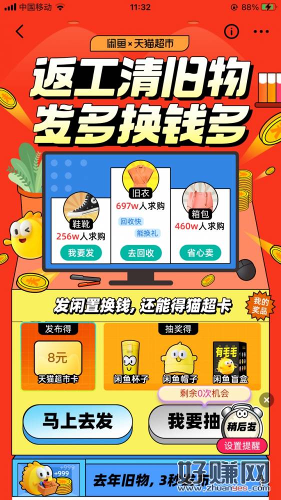 粗暴闲鱼App必得8天猫超市卡