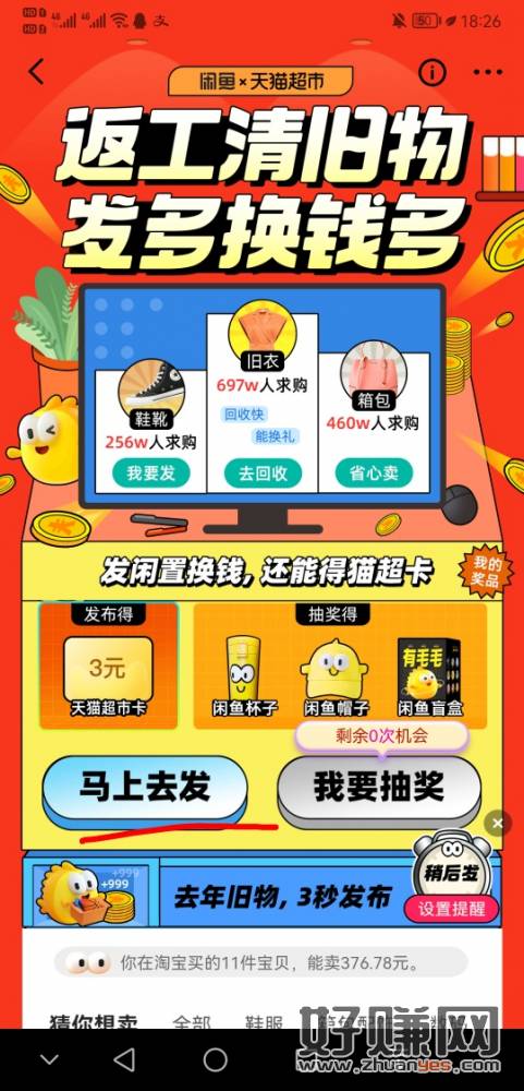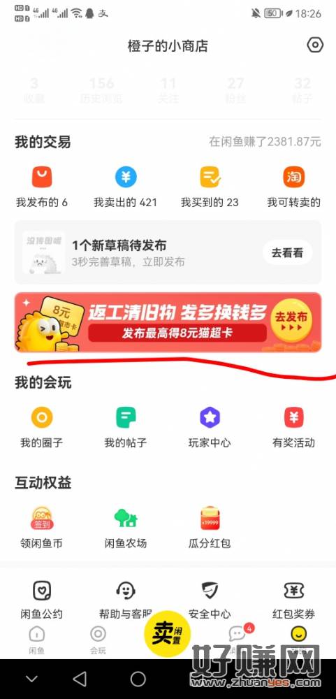 打开闲鱼app-我的-看图点进去-发布一个商品(随便发)必给3猫超,速去兄弟们。