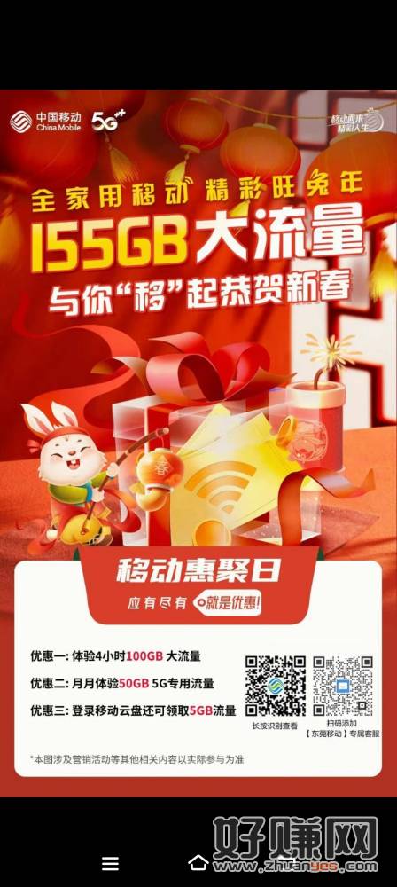 限广东移动的其他省不清楚没测试过,扫第一个码流量福利,100