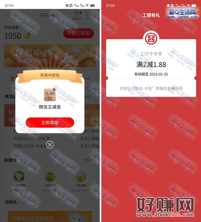 亲测1.88元立减金秒到 工行开工礼抽最高88元立减金