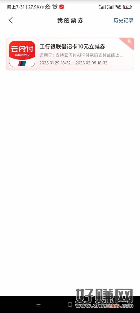 云闪付 工行灵通活动的10元到账了,自己去云闪付查看