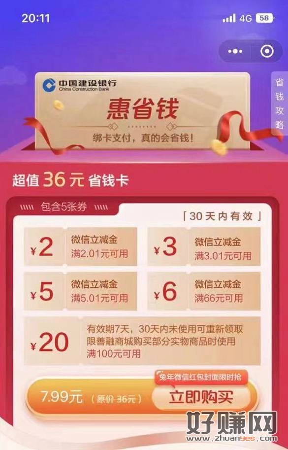 建行app-首页搜索慧省钱,进去看实付金额有利润再去买