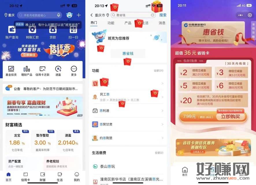 中国建设银行APP搜索“慧省钱”有利润去购买立减金