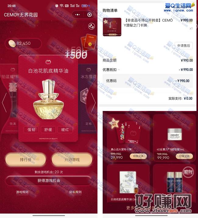 微信0撸化妆品/扑克牌等实物 每日可免费玩3次游戏