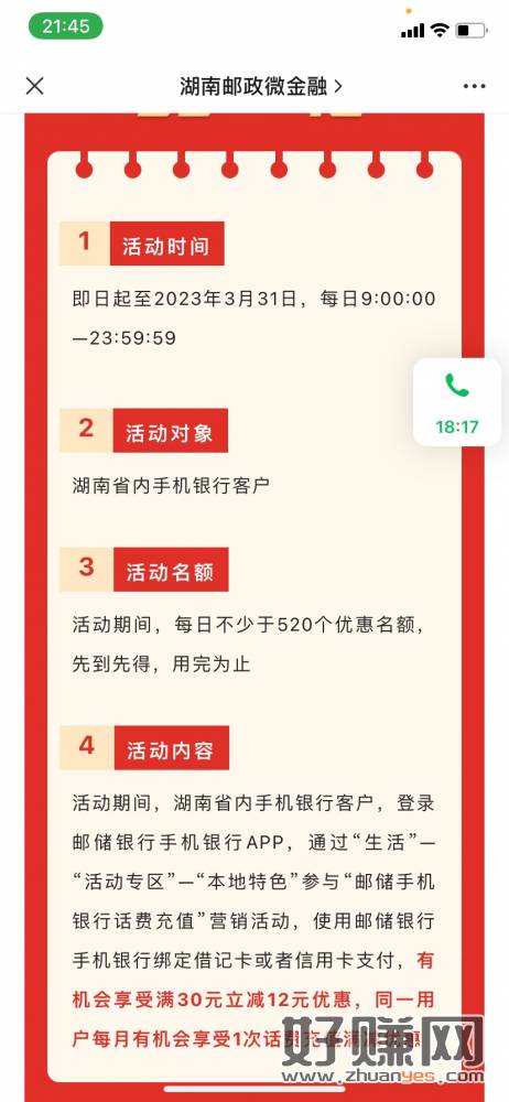 湖南邮储 话费30-12