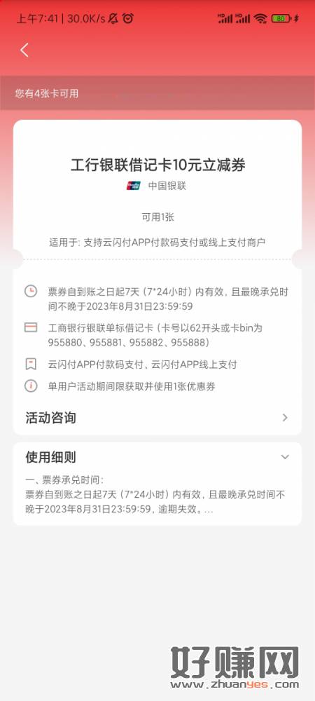 1月20号做过云闪付工行消费3笔任务的,去看看有这张券没