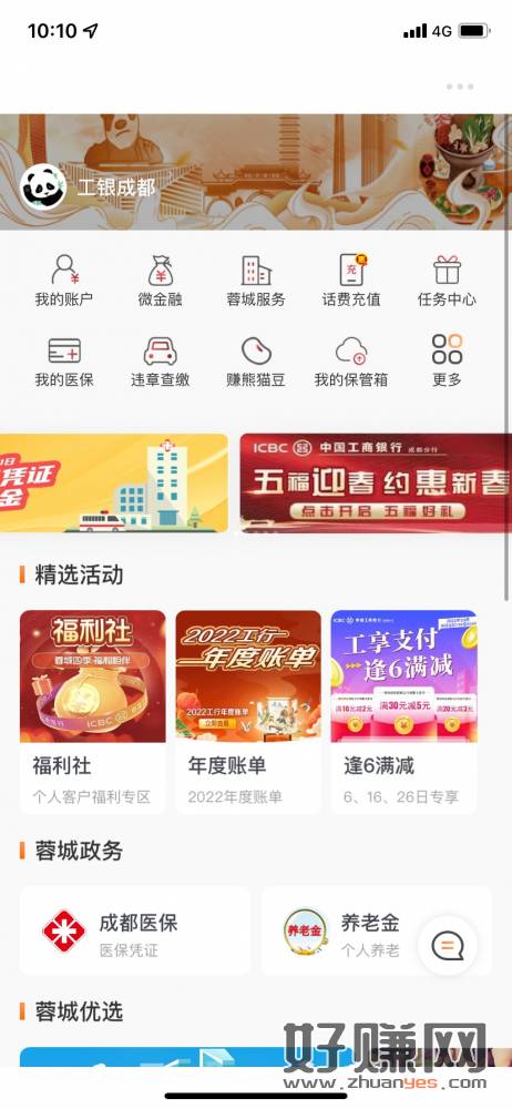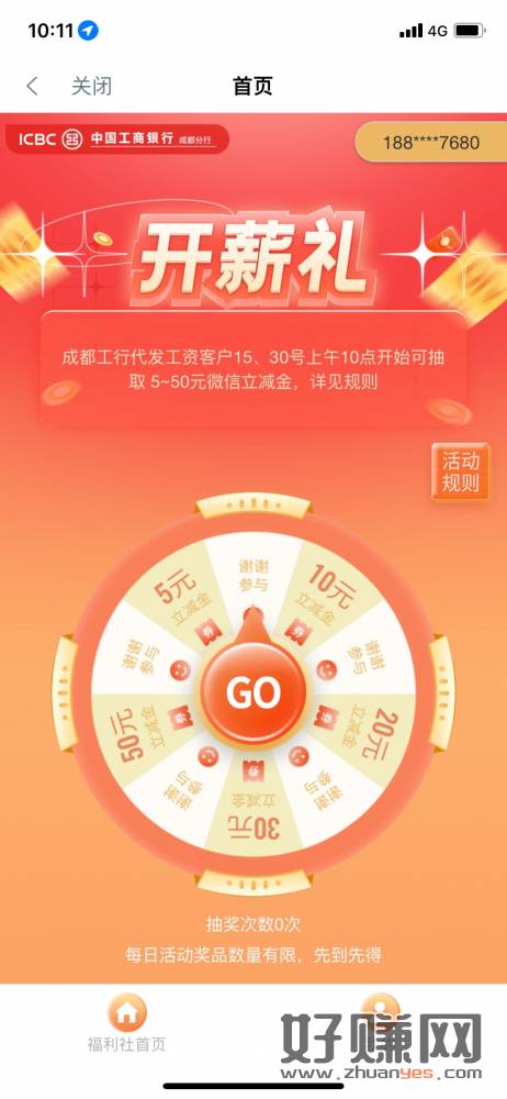 10点工行app-搜工银成都-福利社,不是代发工资也能领,5
