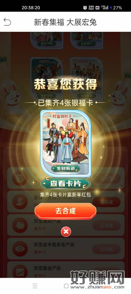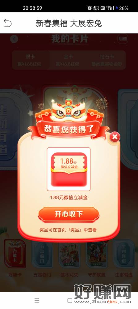 广州农商银行APP首页顶部,大展宏兔活动。集卡,得1.88和