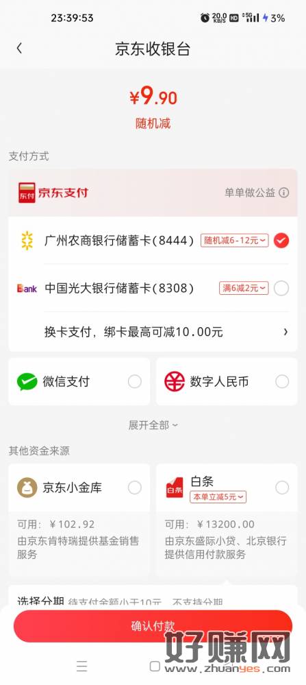 京东支付️ 云闪付 随机减3-88元