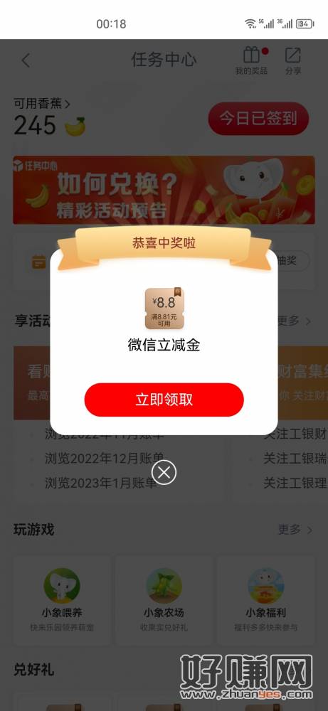 速度工商任务中心 看看有没有一个年度账单分享抽立减金的