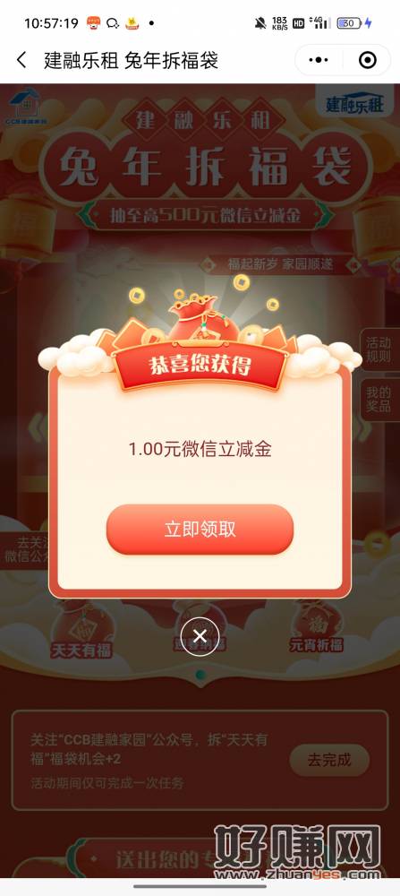 自如生活节抽奖 亲测8.8元现金+眼罩