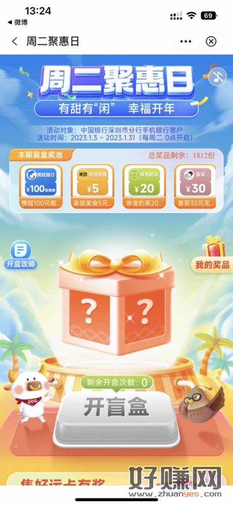 深圳中行开盲盒,刚中20奈雪的茶无门槛